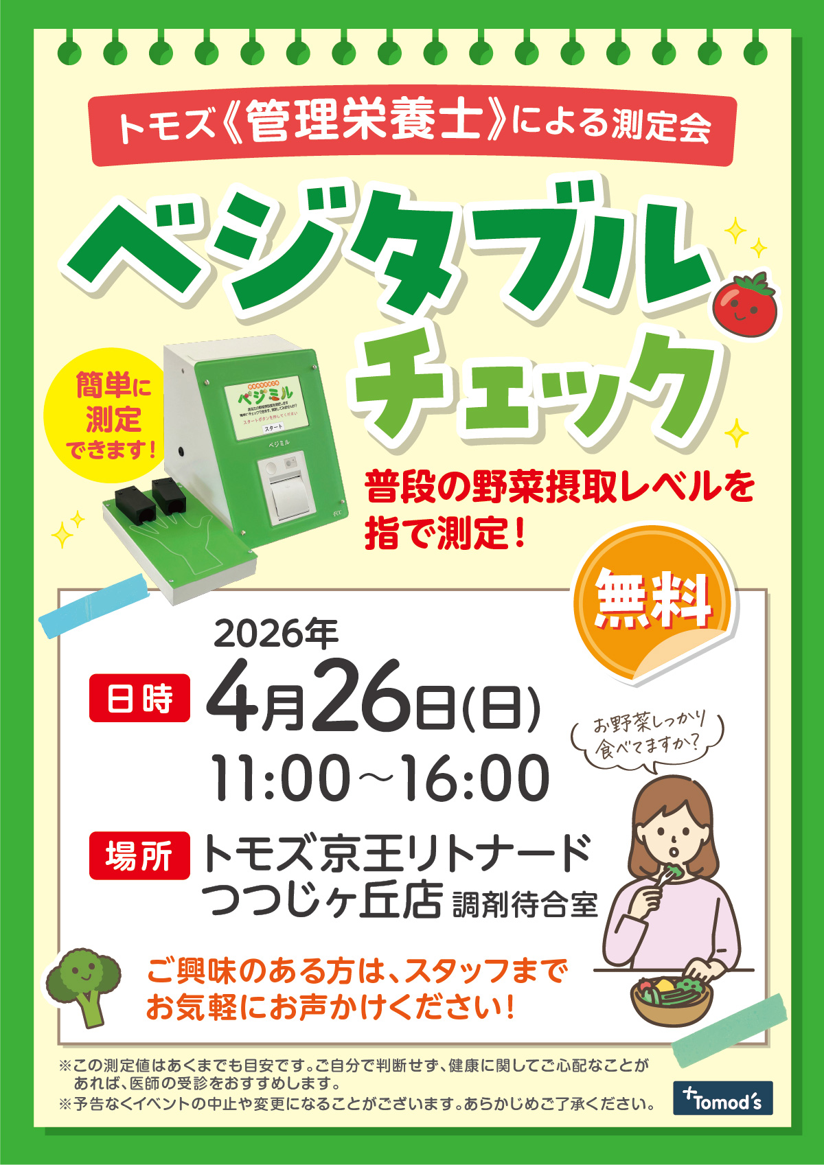 管理栄養士による野菜摂取レベル測定を実施します! ご来店お待ちしております♪